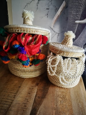 Avant tout elle est respectueuse de l'environnement et des normes écologiques. La panière berbère à couvercle est unique avec ses propres tressages, textures et dimensions. Disponible en différentes couleurs et tailles, elle apporte une touche d'originalité et d'authenticité à votre intérieur.