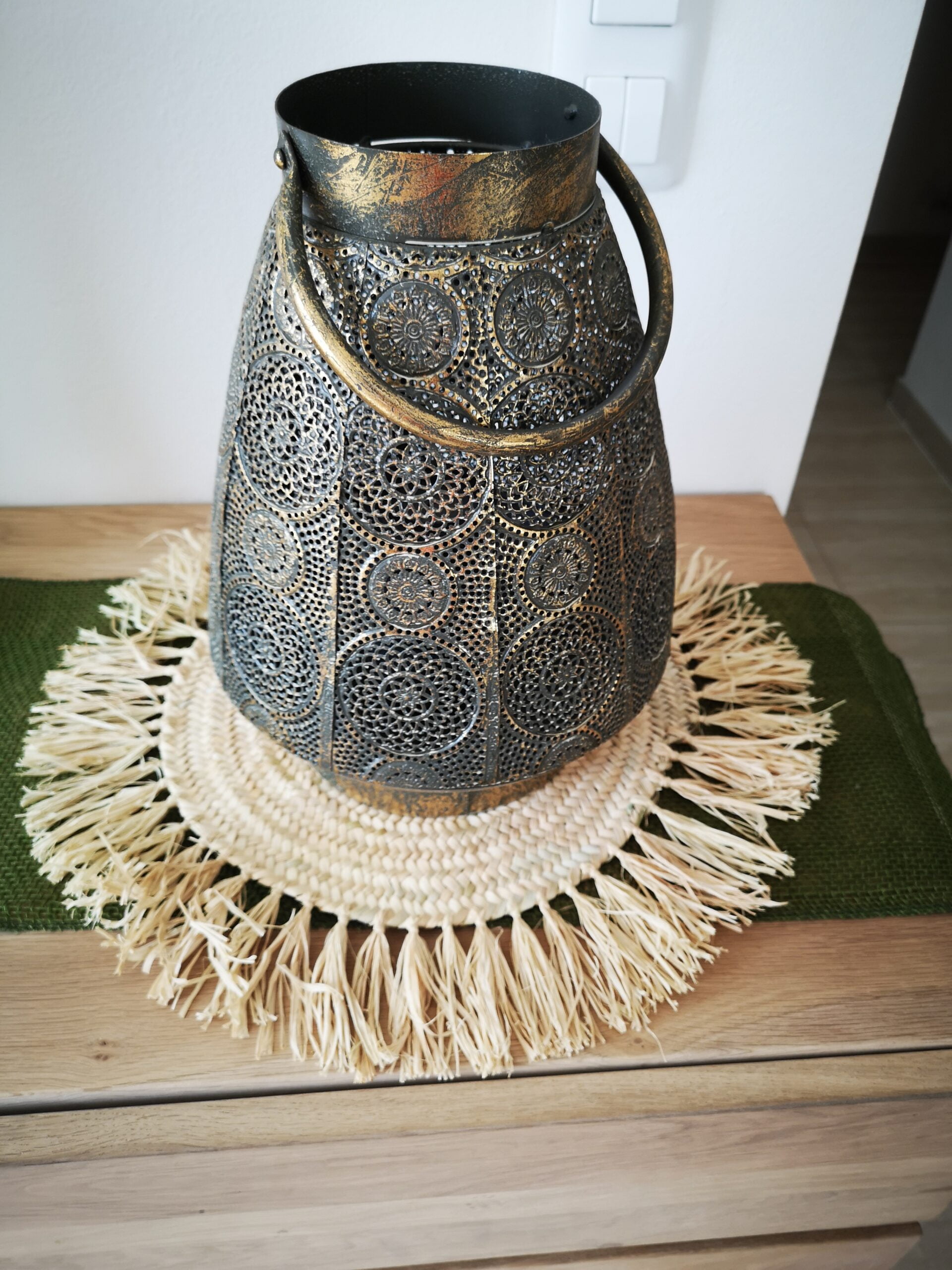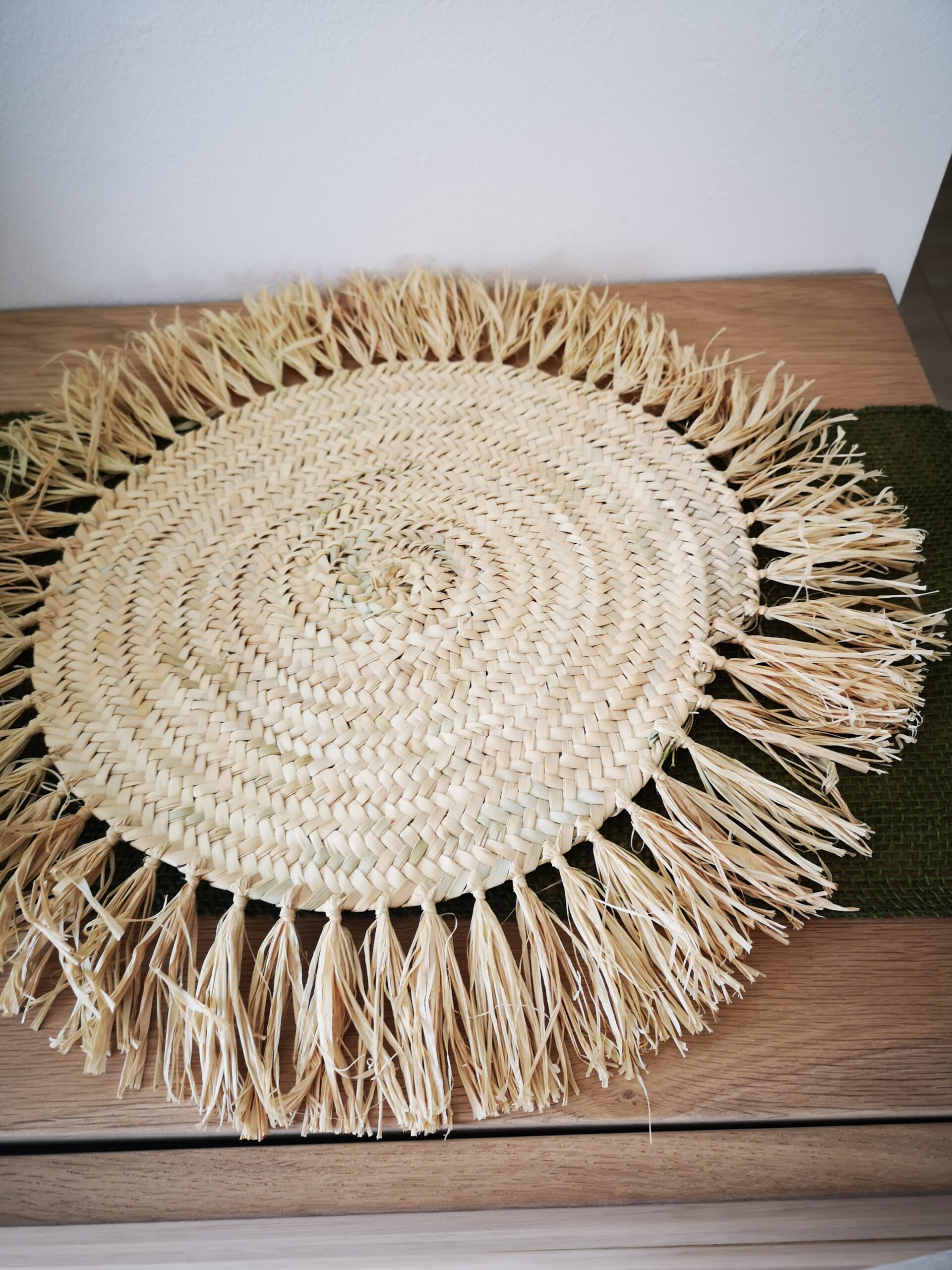 Le set de table en raphia « SOLEIL », fabriqué à la main par nos artisans marocains, est une pièce de décoration bohème ethnique.
